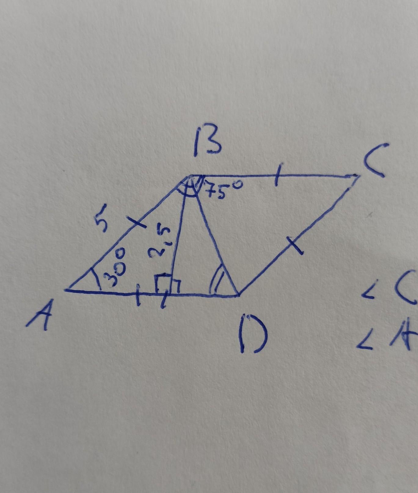 ΔАВD. ∠ВАD=180-75-75=30°.