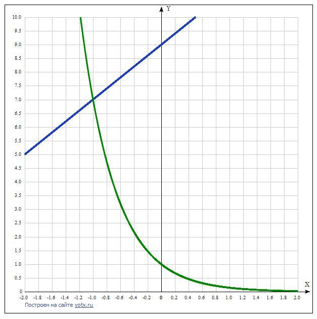Для прямой достаточно двух точек: х = 0, у = 9.