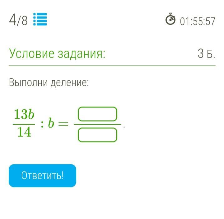 13b/14 : b = (13b • 1)/(14 • b) = 13b/14b = 13/14