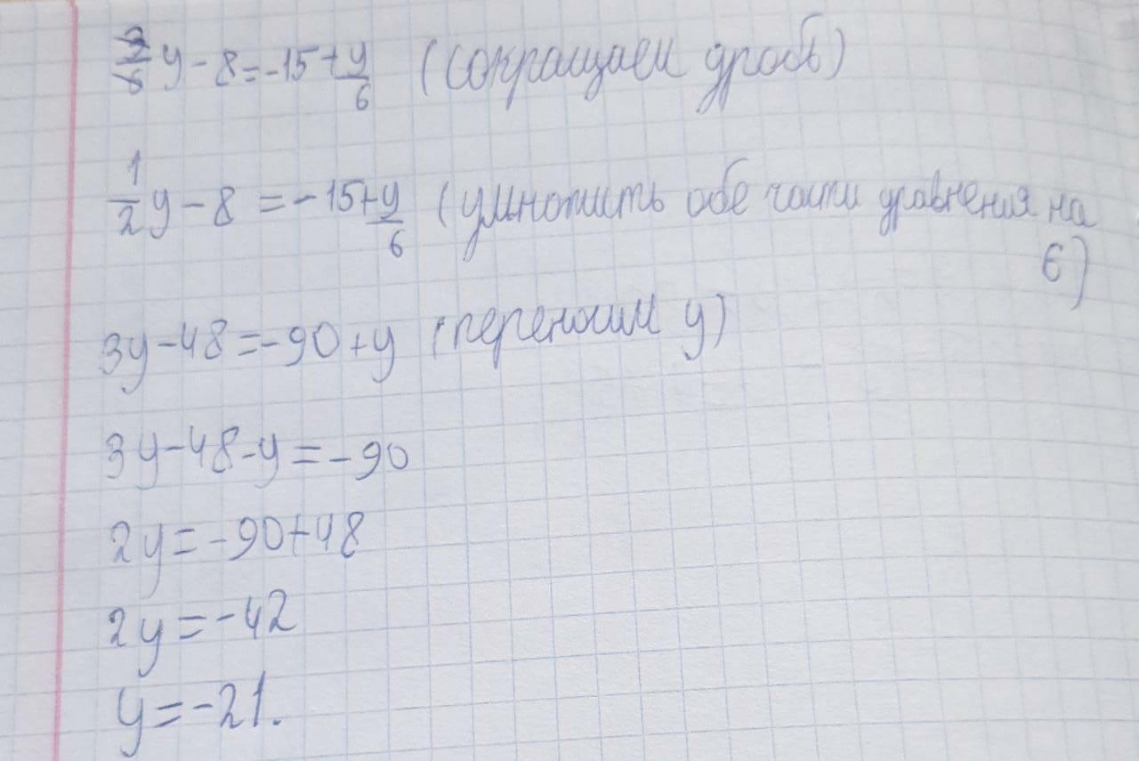 3\6y - 8= -15 +y\6