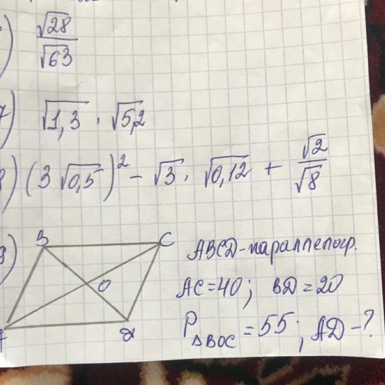BO=OD= 20:2= 10 cm ( так как в точке пересечения диагонали делятся на пополам)