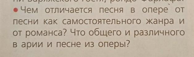 Песня в опере - ария. Она исполняется героем и является его музыкальным портретом. В арии выражены чувства, эмоции, переживания и предчувствия героя.