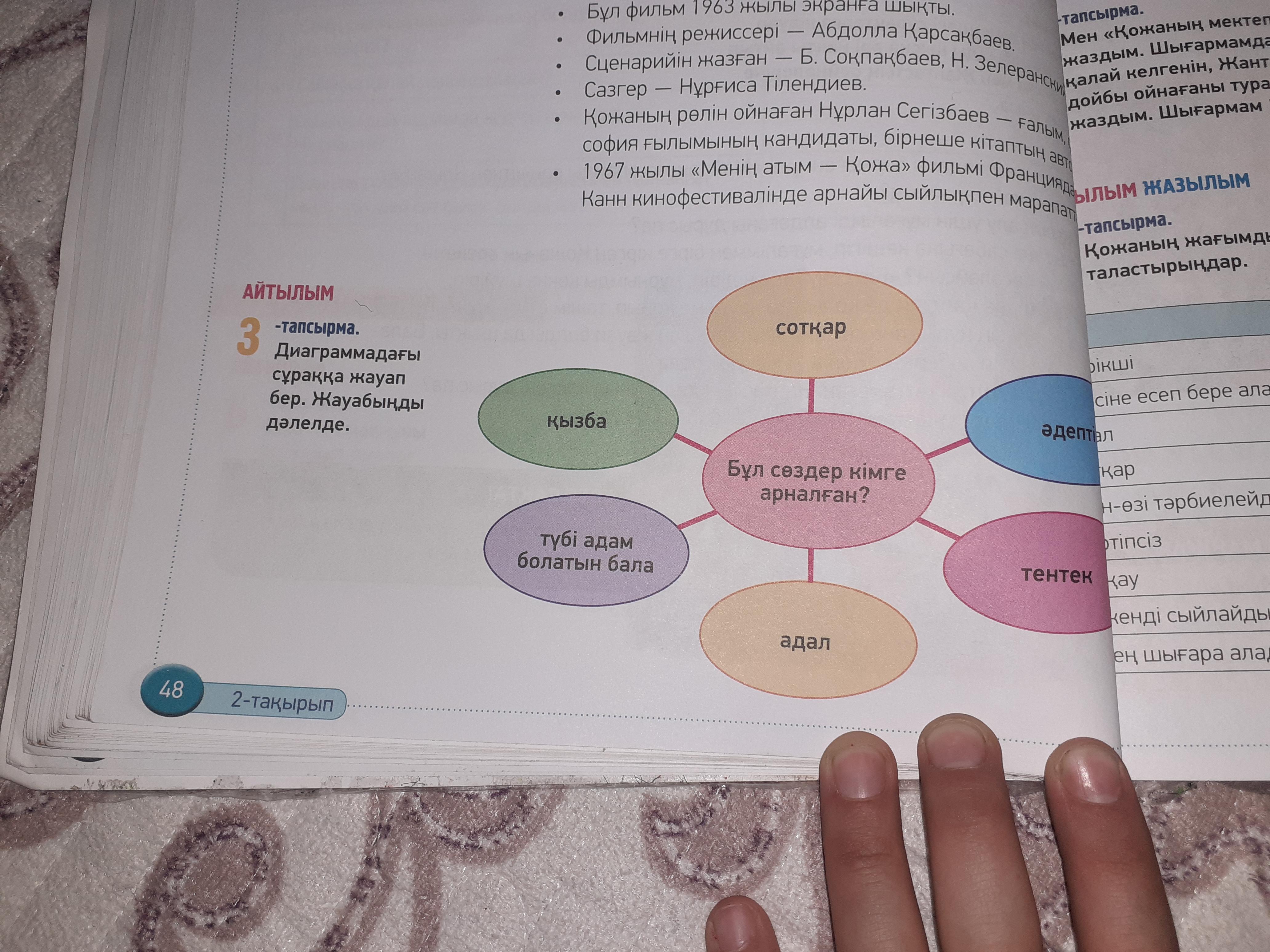 Бұл диаграммадағы сұрақтың жауабы «ҚОЖА». Өйткені ол шыныменде адал, түбі адам болатын балч