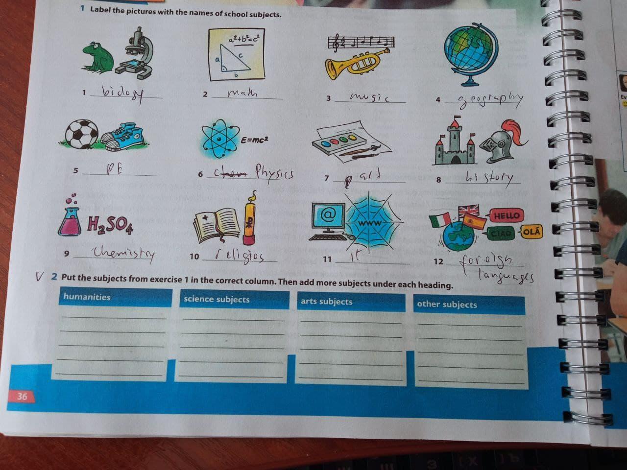Science subjects: Physics, Chemistry, Biology, Geography, Maths, Astronomy