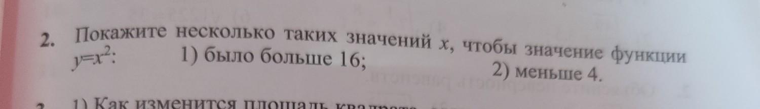 .Покажите несколько таких значений X чтобы значение функции y=x в квадрате было больше 16 и меньше 4