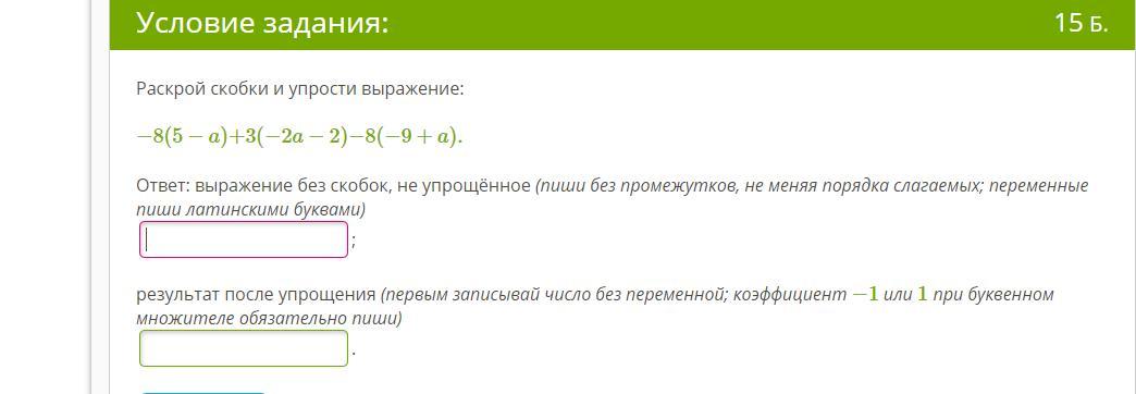 -8(5-а)+3(-2а-2)-8(-9+а)=-40+8а-6а-6+72-8а=-6а+26