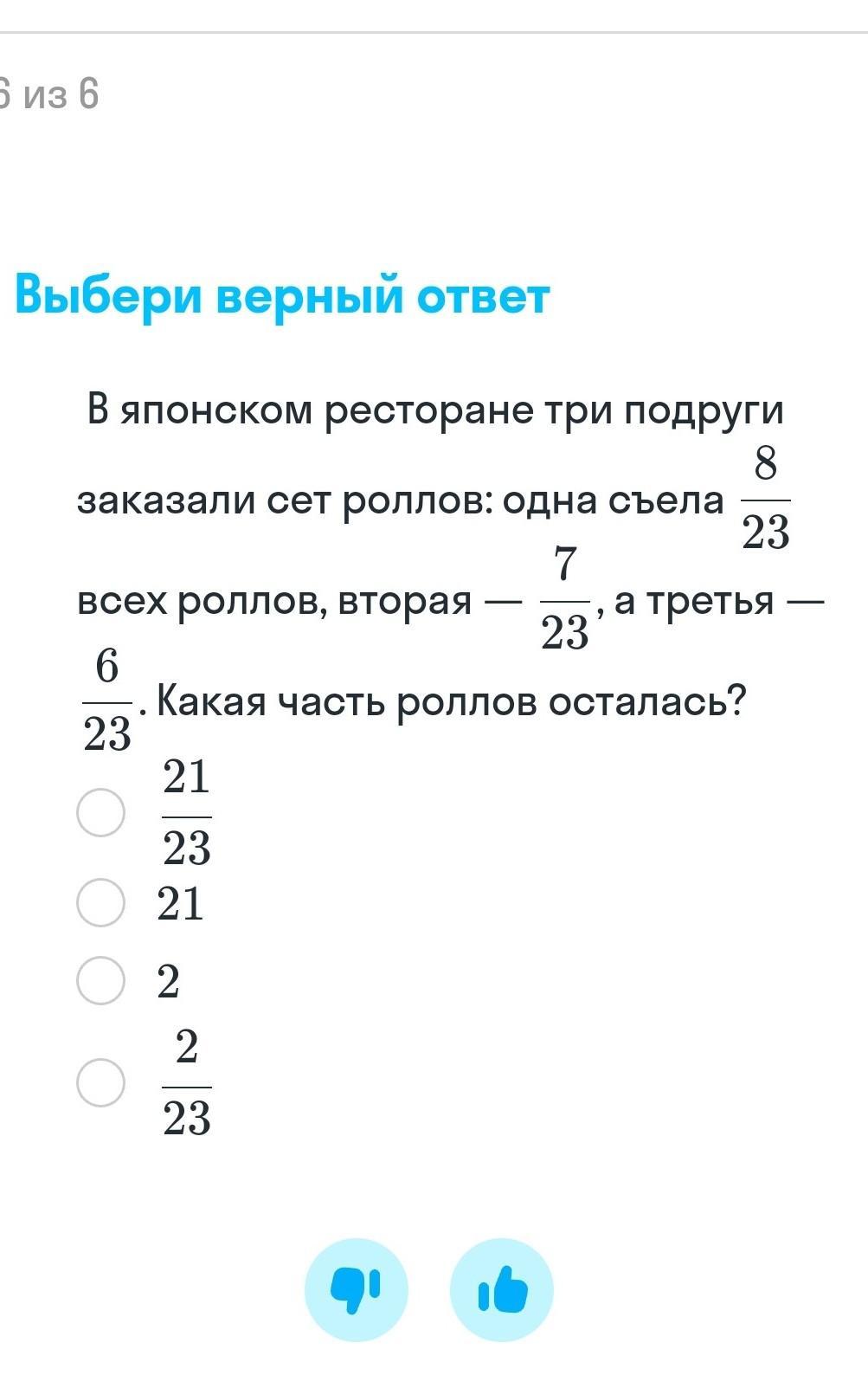 23/23 - 8/23 - 7/23 - 6/23 = 2/23