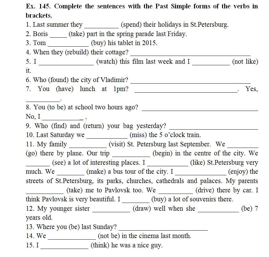 11. visited, went, began, saw, liked, made, enjoyed, took, drove, bought.