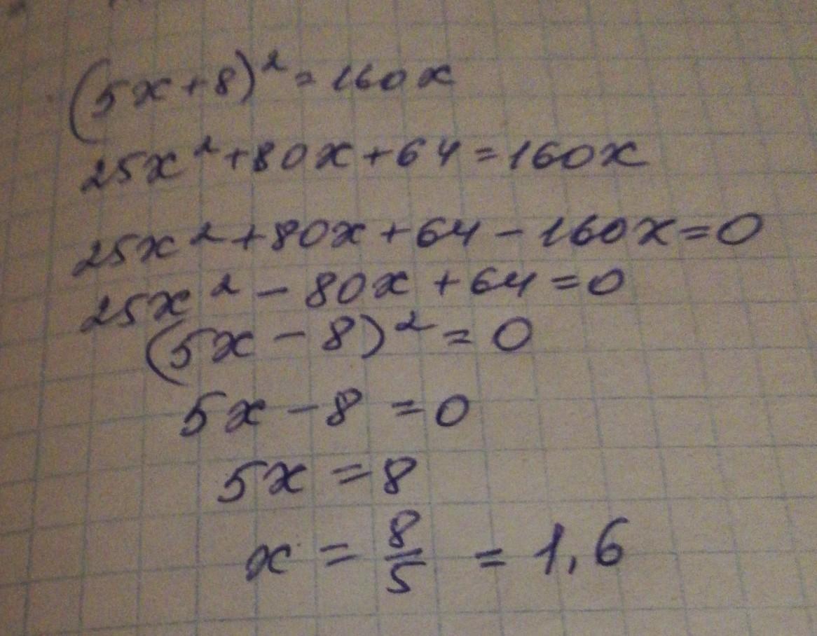(5х)² + 2 · 5х · 8 + 8² = 160х