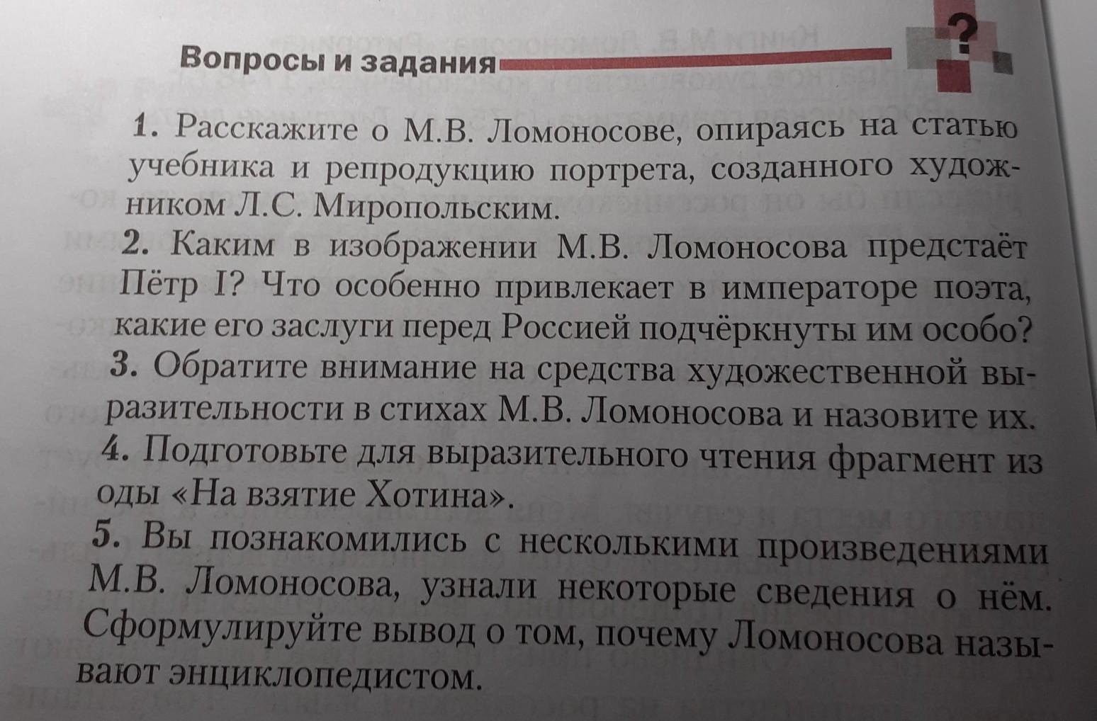1. М.В. Ломоносове опираясь на статью учебника и репродукцию портрета .