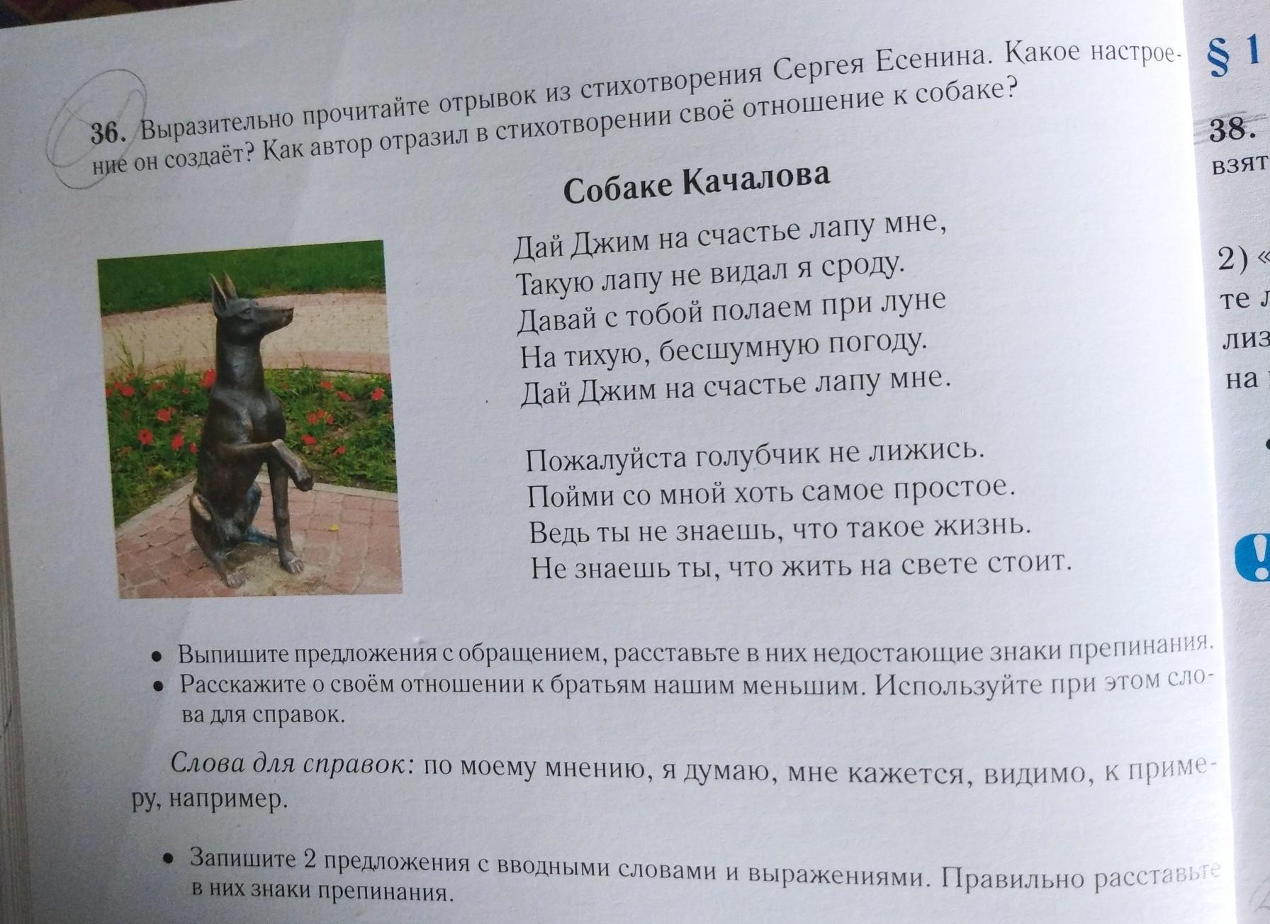 Грустное,жалкое. Автор отразил свое отношение к собаке он обращается к нему как к другу значит что он ему дорог, он общается с ним, и рассказывает про жизнь.