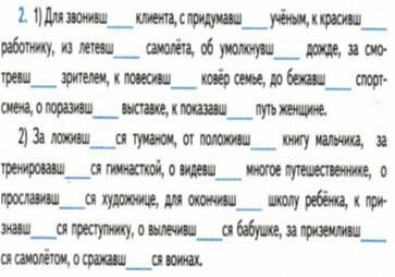 2) За ложившимся туманом,от положившего книгу мальчика, за тренировавшиеся гимнасткой, о видевшем многое путешественнике,о прославившиеся художнице, для окончившему школу ребенка, к признавшимся преступнику, о вылечившиеся бабушке, за приземлившемся самолётом, о сражавшихся воинах.