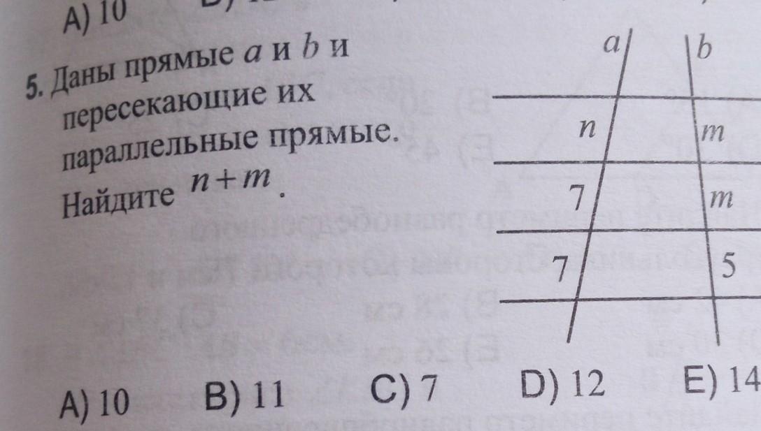 по теореме Фалеса мы знаем, что в таком случае отрезки равны. значит, n=7, m=5