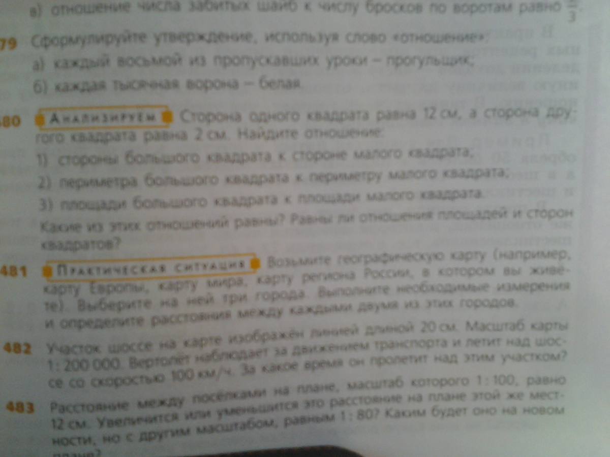 Сторона одного квадрата равна 12 см, а сторона другого квадрата равна 2 см.Найдите отношения: