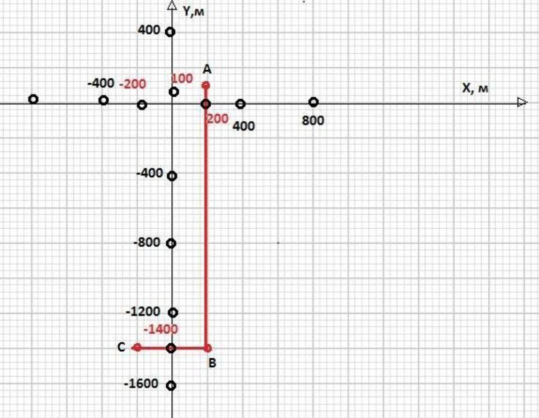 1. Грибники спочатку був у точці А з координатою х 200м, у100 м.Через годину він перемістився в точку В, розташовану на відстані 1 км від точки А у напрямку на південь, а ще через півгодини- в точку С, розташовану на відстані 400 м від точки В у напрямку на пiвденний захід. Накресліть у зошиті систему координат, зобразіть зазначені точки, визначте іхні координати. Який шлях подолали грибники, та яке переміщення вони здійснили? Визначити проекції переміщень на відрізку АВ та АС, а також проекцП вектора переміщення на осі. Розрахувати середню шляхову швидкість, та середню швидкість переміщення. Домовимося, що напрямок осі ОХ с напрямком на схід, а напрямок оcі OY- напрямком на північ.