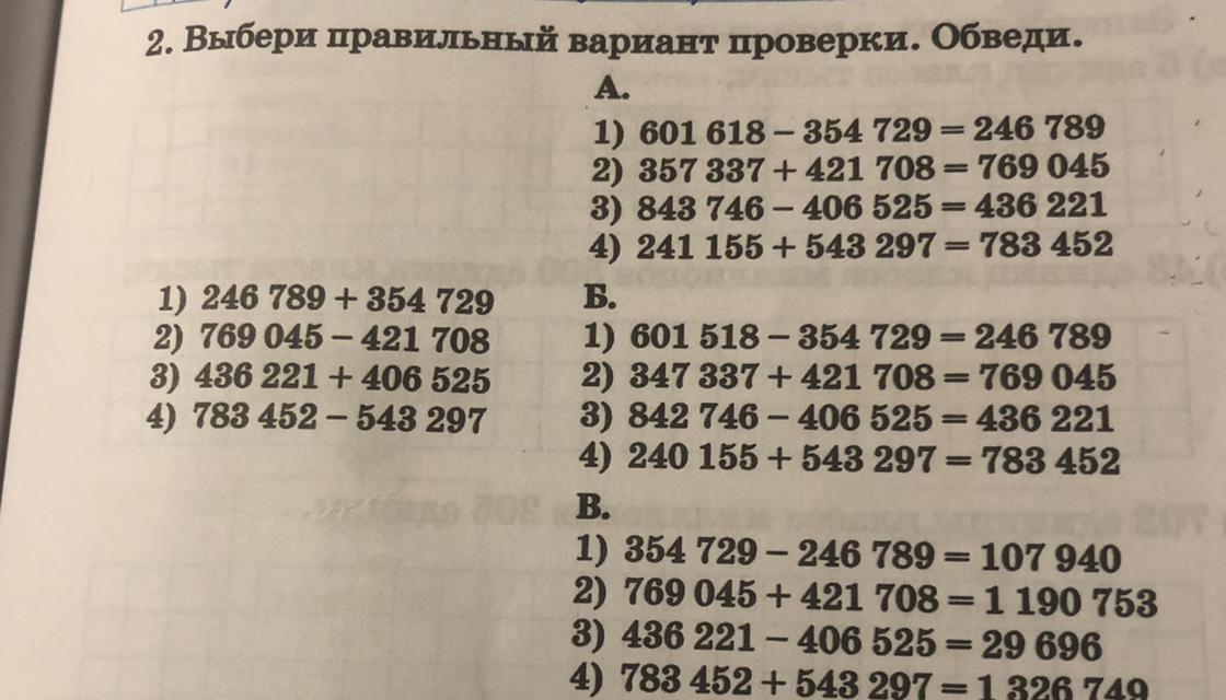 2 Выбери правильный вариант проверки. Обведи.