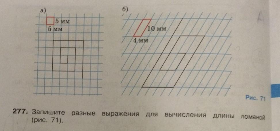 Срочно помогите! 77. Запишите разные выражения (рис. 71). для вычисления длины ломаной