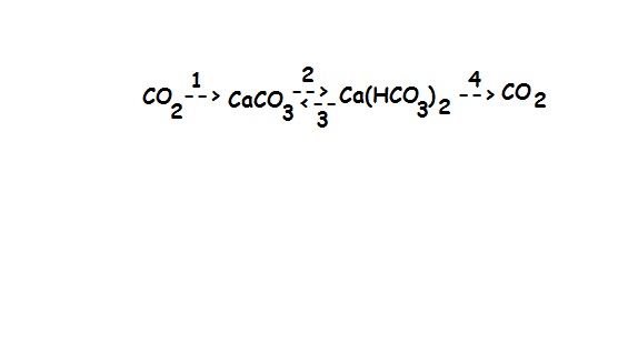3)Ca(HCO3)2-->(темп.)CO2+H2O+CaCO3↓