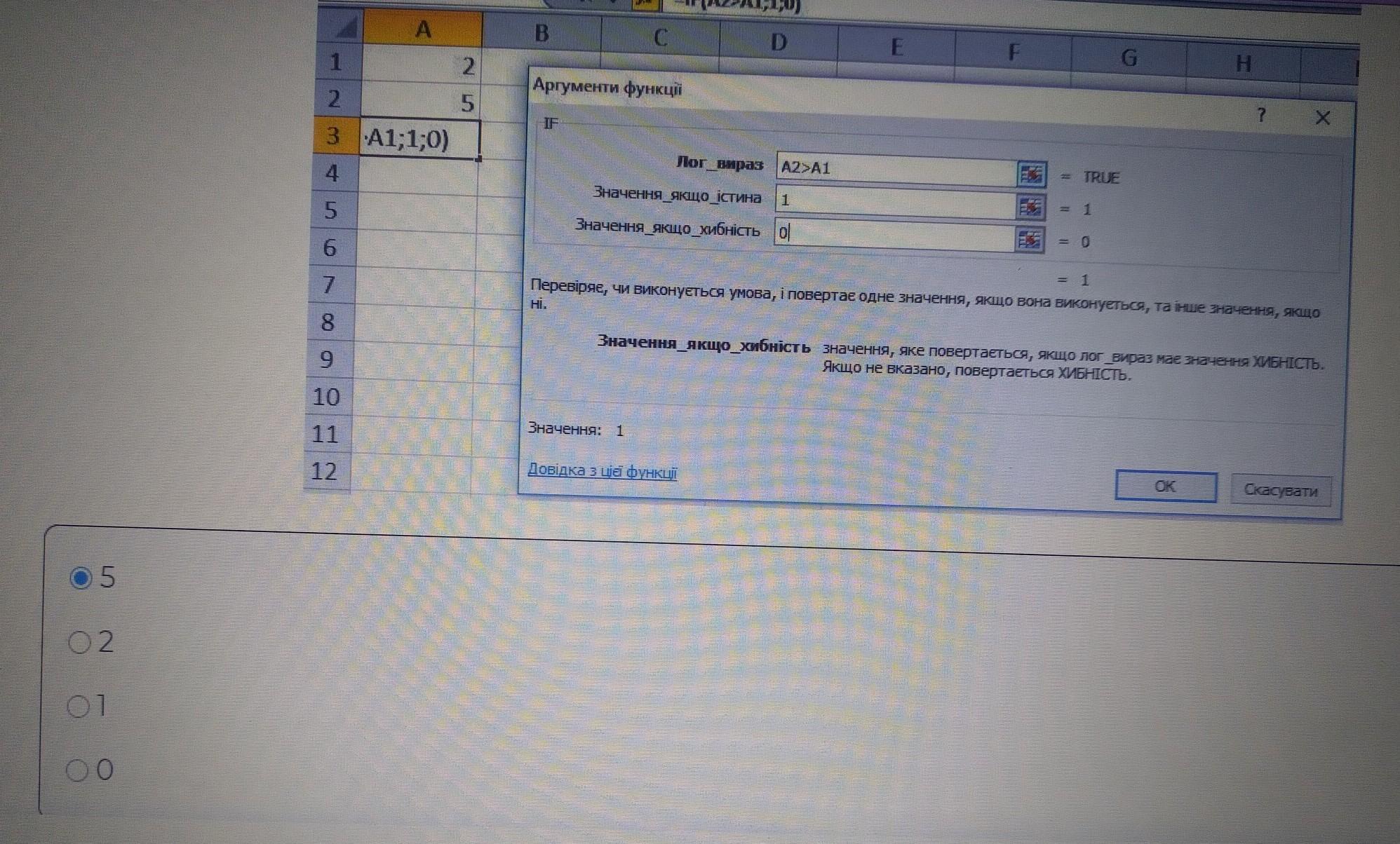 5 > 2 - істина, тому буде виведено 1
