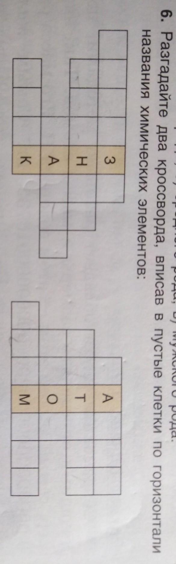 разгадайте два кроссворда, вписав в пустые клетки по горизонтали названия химических элементов.