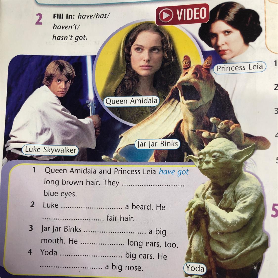 Yoda has got big ears. He hasn't got a big nose.