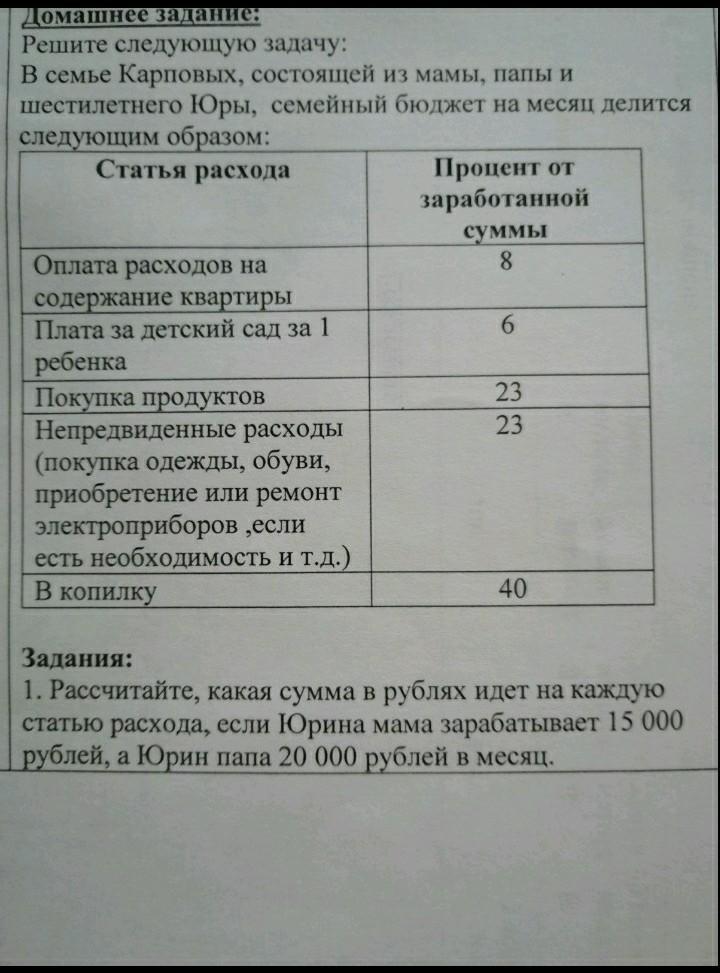 20000 + 15000 = 35000 руб зарабатывают папа и мама