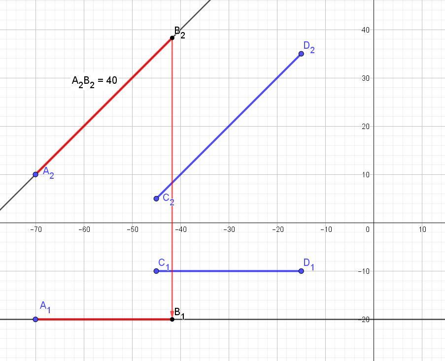 Задание упрощено тем, что прямая CD параллельна фронтальной плоскости, и поэтому в этой плоскости её натуральная длина.