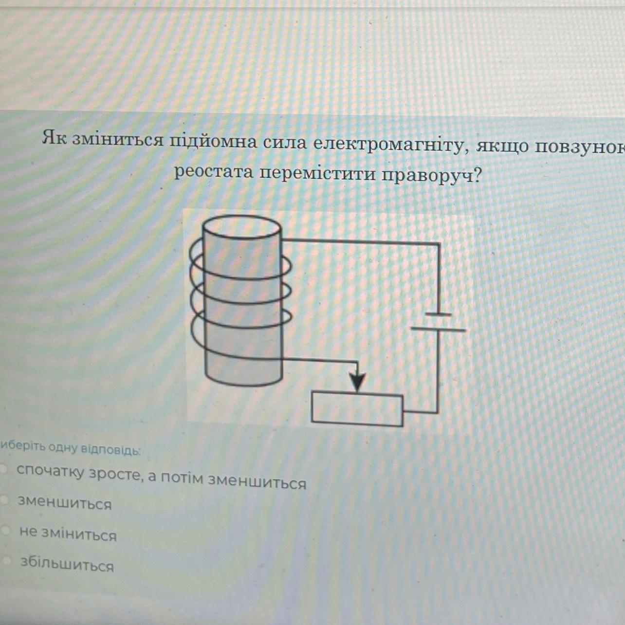 Як зміниться підйомна сила електромагніту, якщо повзунок реостата перемістити праворуч?