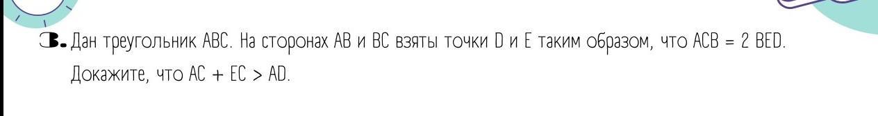 Дан треугольник ABC. на сторонах AB и BC взяты точки D и E таким образом что ACB равен 2BEC. Доказать что AC + EC больше AD