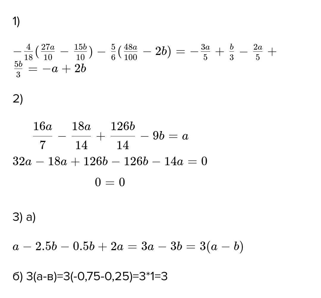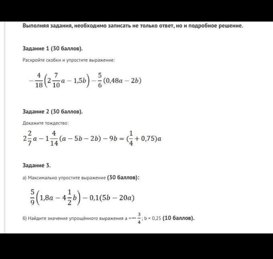 УМОЛЯЮ ПОМОГИТЕ!!!СРОЧНО!!!ДАМ 40 БАЛЛОВ Раскройте скобки и упростите выражение: 10.jpg Задание 2 (30 баллов). Докажите тождество: image002.gif Задание 3. а) Максимально упростите выражение (30 баллов): 12.jpg б) Найдите значение упрощённого выражения a =13.jpg; b = 0,25 (10 баллов).