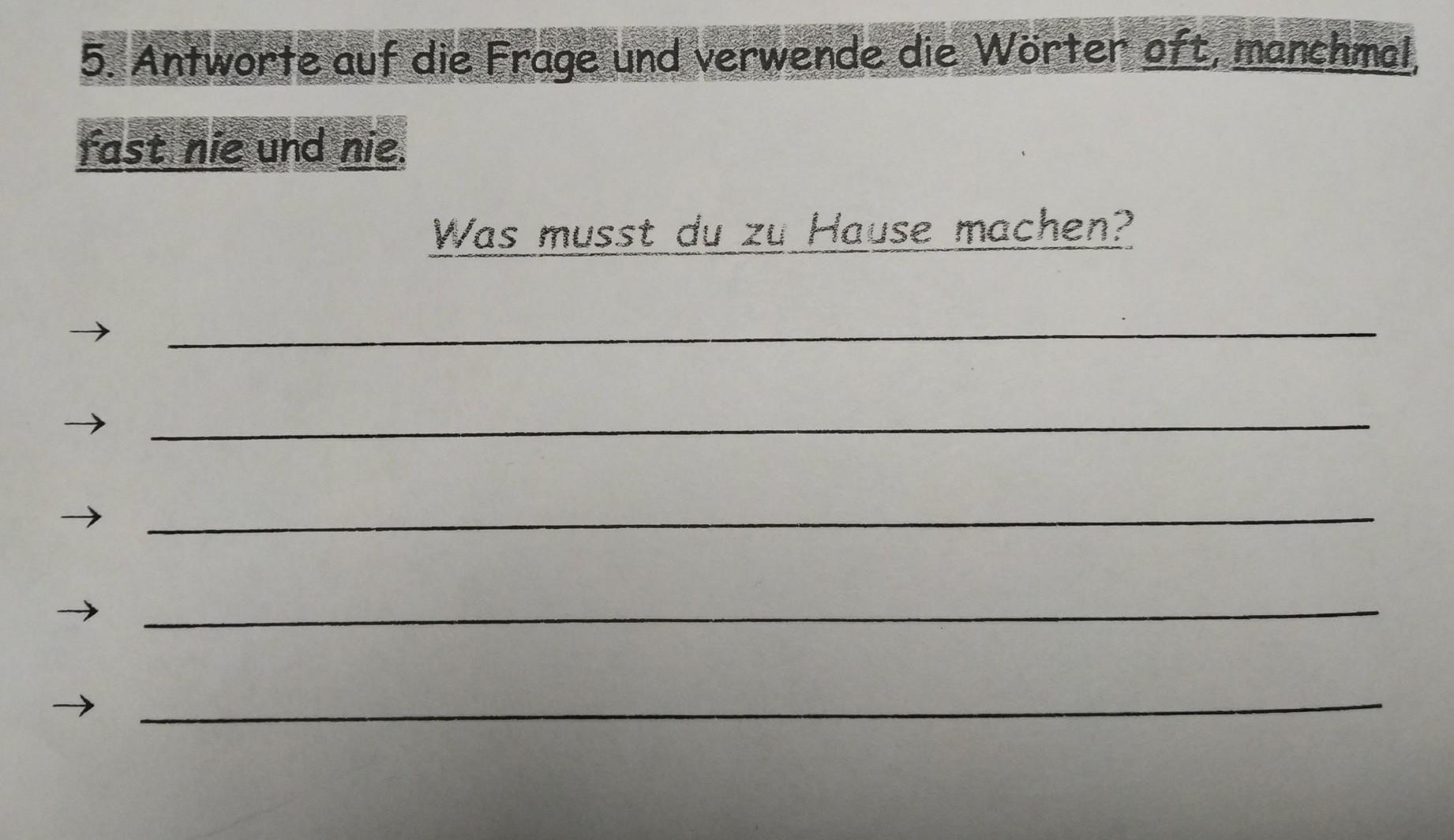 нужно ответить на вопрос "что тебе нужно делать дома?", используя слова "часто", "иногда", "почти никогда", "никогда"