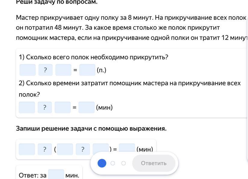 Всего полок нужно прикрутить = 48 минут / 8 минут = 6 полок