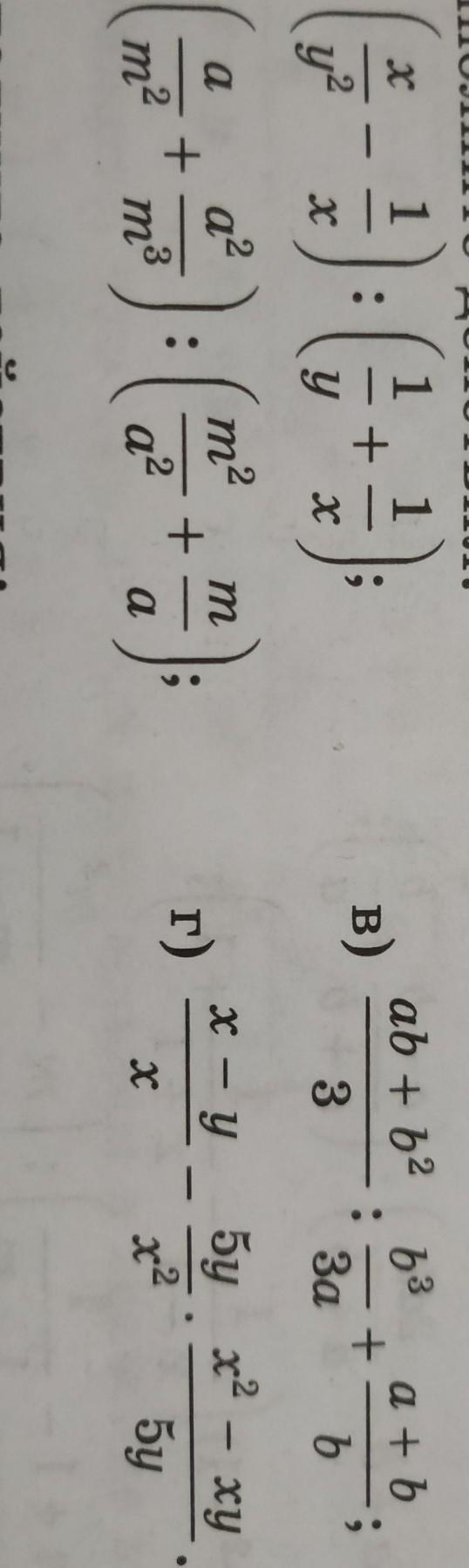 1.(х/у^2-1/х)÷(1/у+1/х)=х^2-у^2/ху^2÷х+у/ху=(х-у)×(х+у)/ху^2×ху/х+у=х-у/у