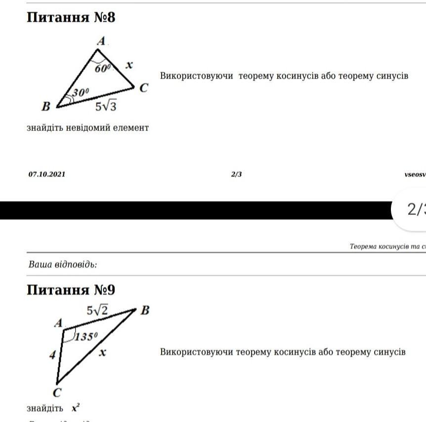 х²=(5√2)² + 4² - 2 * 5√2 * 4 * cos135° = 50+16-40√2 * (-√2/2) = 66 - (-40) =