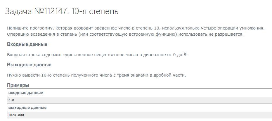 Напишите программу, которая возводит введенное число в степень 10, используя только четыре операции умножения. Операцию возведения в степень (или соответствующую встроенную функцию) использовать не разрешается.