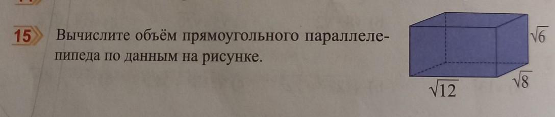 V=abc=√12*√6*√8=√(12*6*8)=√576=24 куб.единиц