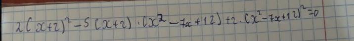 2(x+2)^2 - 5(x+2)(x^2-7x+12) + 2(x^2-7x+12)^2 = 0