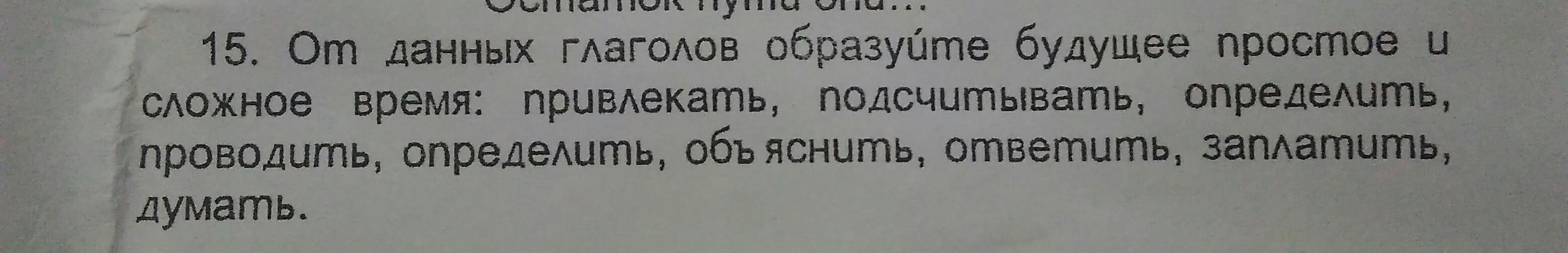 Ответ:привлеку, буду привлекать; подсчитаю, буду подсчитывать; определю, буду определять; объясню, буду объяснять; отвечу, буду отвечать; заплачу, буду платить; подумаю, буду думать.