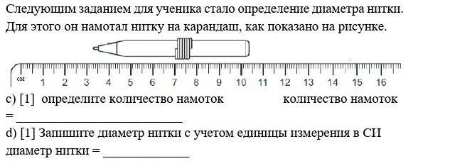 7. задание. д. Запишите диаметр нитки с учётом единицы измерения в СИ диаметр, нитки=