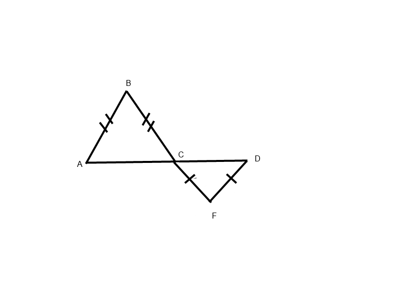 угол АСВ=углу FCD так как они вертикальные, поэтому