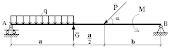 распределенную нагрузку привести к сосредоточенной и приложить в центре кю : Ф кю = кю*8 м = 5*8=40 Н Ф разложить на две составляющие : Фх = Ф*кос 40=30,642 Н ; Фу = Ф*син 40 = 25,712 Н. Сумма моментов относительно левой опоры равна 0, тогда : - Фу*1м - Ф кю*6м + Р правой. у*10 м + М = 0 Р правой. у = (Фу*1м + Ф кю*6м - М) / 10 м = 25,5712 Н Сумма всех сил на ось у равна нулю, тогда : Р прав. у - Фу - Ф кю + Р левая. у = 0, отсюда Р левая. у = - Р прав. у + Фу + Ф кю = 40,1408 Н Обе опоры в одинаковой степени воспринимают горизонтальную составляющую Фх. Тогда Р прав. х = Р левая. х = Фх / 2 = 30,642 / 2 = 15,321 Н Полные реакции опор: Р левая = корень (Р лев. у^2 + Р лев. х^2) = кор (40,1408^2 + 15,321^2) = 42,965 Н Р правая = корень (Р прав. у^2 + Р прав. х^2) = кор (25,5712^2 + 15,321^2) = 29,810 Н Обе направлены вправо вверх.