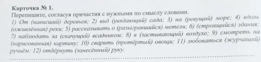 1}от нависш их деревьев 2)вид увядающ его сада 3)на ревущ ем море 4)вдоль оживленн ой реки 5)рассказывать о разыгравшией ся метели 6)строящи еся здания 7)наблюдать за скачущ им всадником 8)в застывающем воздухе на 9)смотреть на нарисованн ую картину 10)сварить протерт ые овощи 11)любоваться журчащим ручьем 12)отдернуть занесенн ую руку