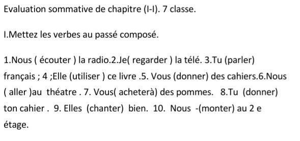 1)avons écouté 2)j'ai regardé 3)as parlé 4)a utilisé 5)avez donné 6)sommes allés 7)avez achetté 8)as donné 9)a chanté 10) avons monté