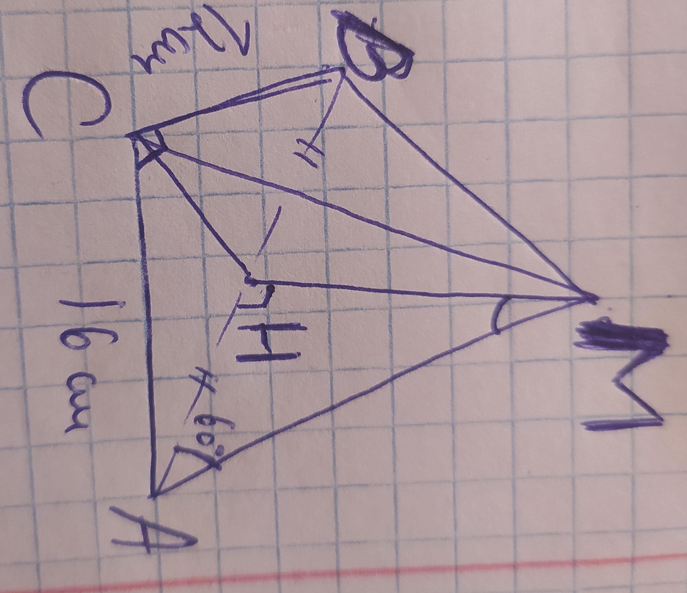 найдем МН=tg ∠МAН*AH=tg60*10=10cм