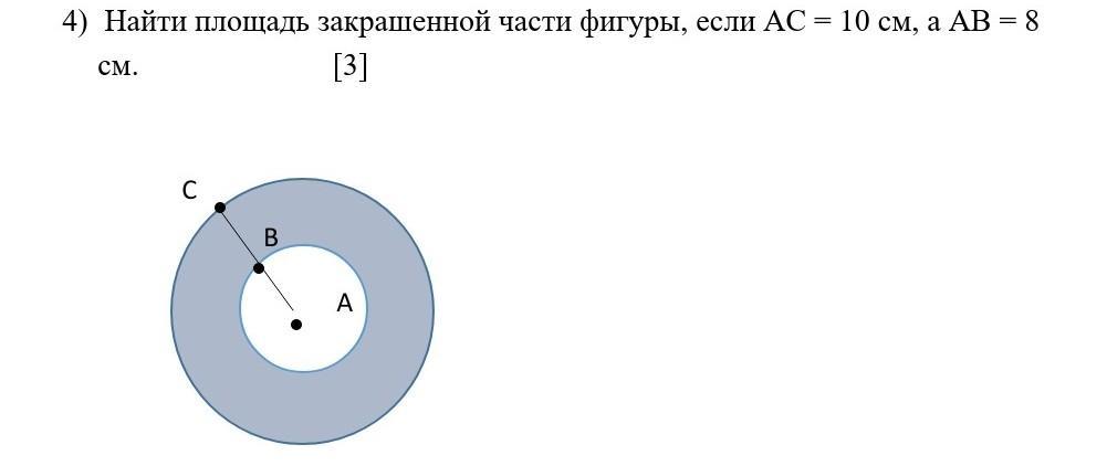 1) Найти площадь закрашенной части фигуры, если АС = 10 см, а АВ = 8 см. ПОМОГИТЕ ПОЖАЛУЙСТА СОР?!?!?!