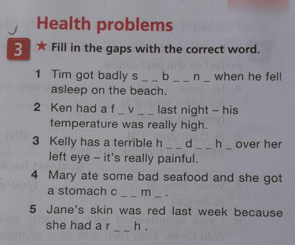 3. Kelly has a terrible headache over her left eye - it's really painful.