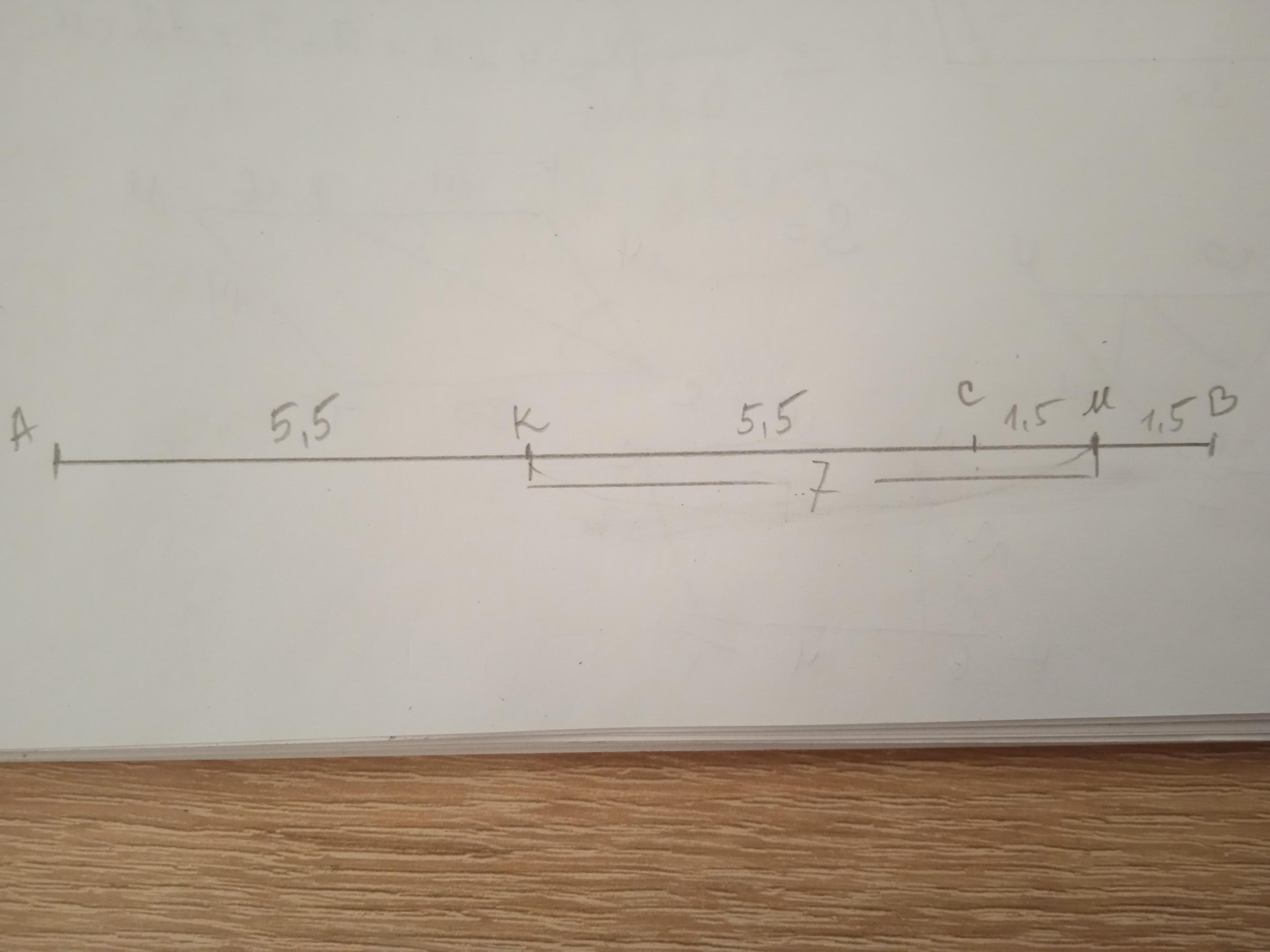 Дано: прямая АВ, точка С, ВС=3 см, АС>ВС; АК=КС; СМ=ВМ; КМ=7 см.
