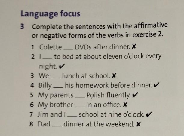 3 Complete the sentences with the affirmative or negative forms of the verbs in exercise 2.