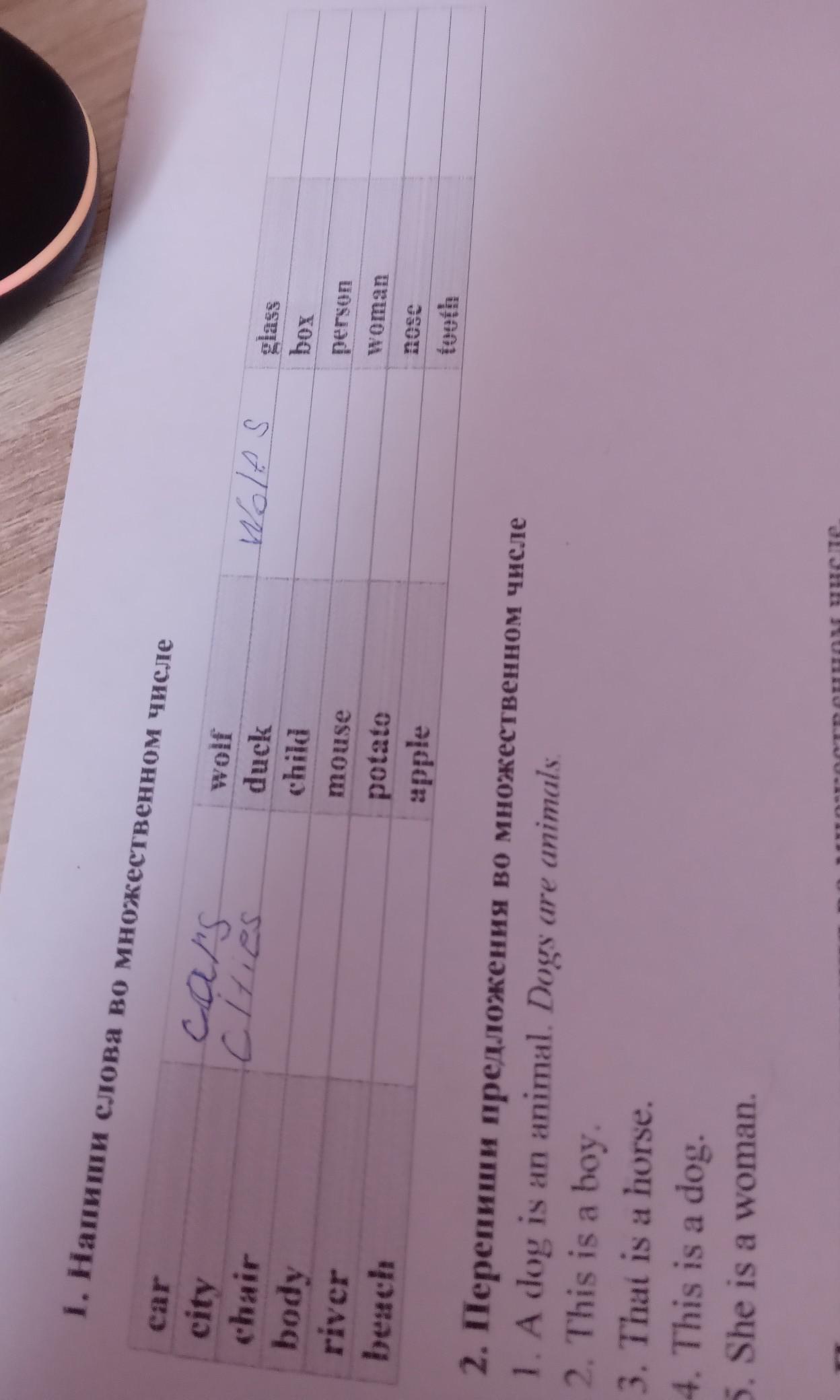 1. chairs bodies rivers beaches ducks children mouses potatos apples glasses boxes people women noses toothes