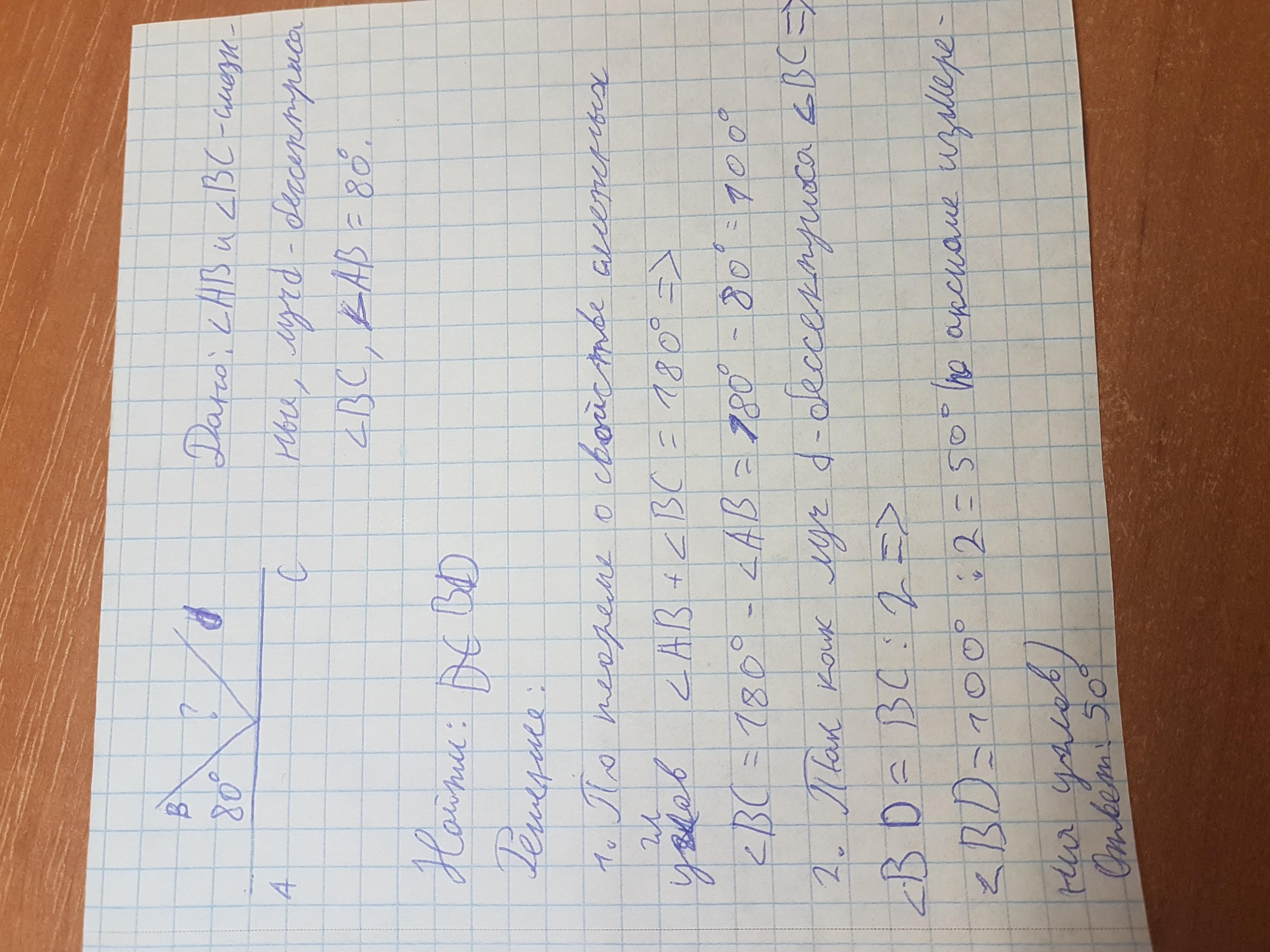 Луч С-биссектриса угла АВ. Луч d-биссектриса угла BC. Найдите угол BD, если угол AB = 80°
